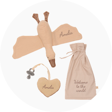 აღნიშნეთ ცხოვრების ყველაზე ტკბილი მომენტები ორგანული ბამბისა და სელის სუვენირებით. იდეალურია ბავშვის დაბადების დღისთვის, სქესის გამჟღავნების წვეულებებისთვის და ახალშობილის დაბადების დღისთვის.