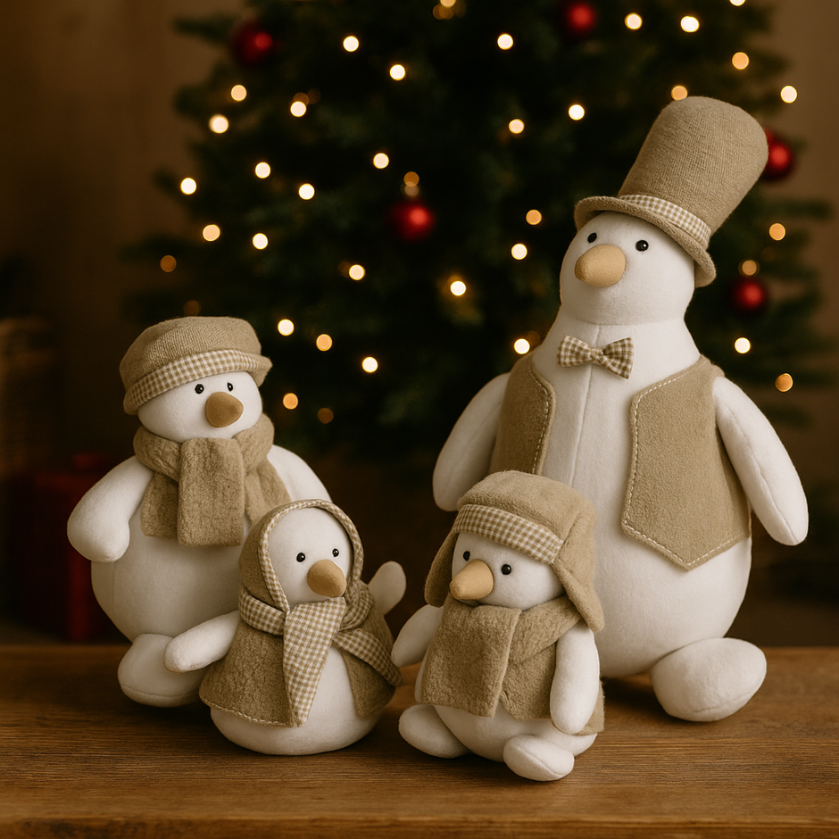 გაიცანით თოვლის ქუდისებრი თოვლის კაცების ოჯახი — რბილი თოვლის კაცების მომხიბვლელი კოლექცია, რომელიც სადღესასწაულო სეზონს სითბოს, კომფორტს და სკანდინავიური სიმშვიდის ელფერს სძენს.