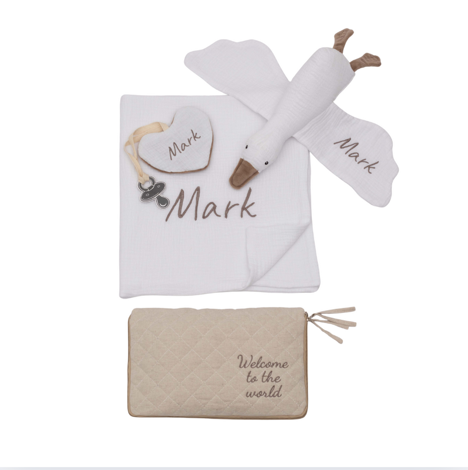ეს 4-ნაწილიანი სასაჩუქრე ნაკრები აერთიანებს სინაზეს, უსაფრთხოებას და პერსონალიზაციას, რაც მას იდეალურ არჩევნად აქცევს ბავშვის წვეულებებისთვის, ნათლობისთვის ან პატარების სამყაროში მისასალმებლად.